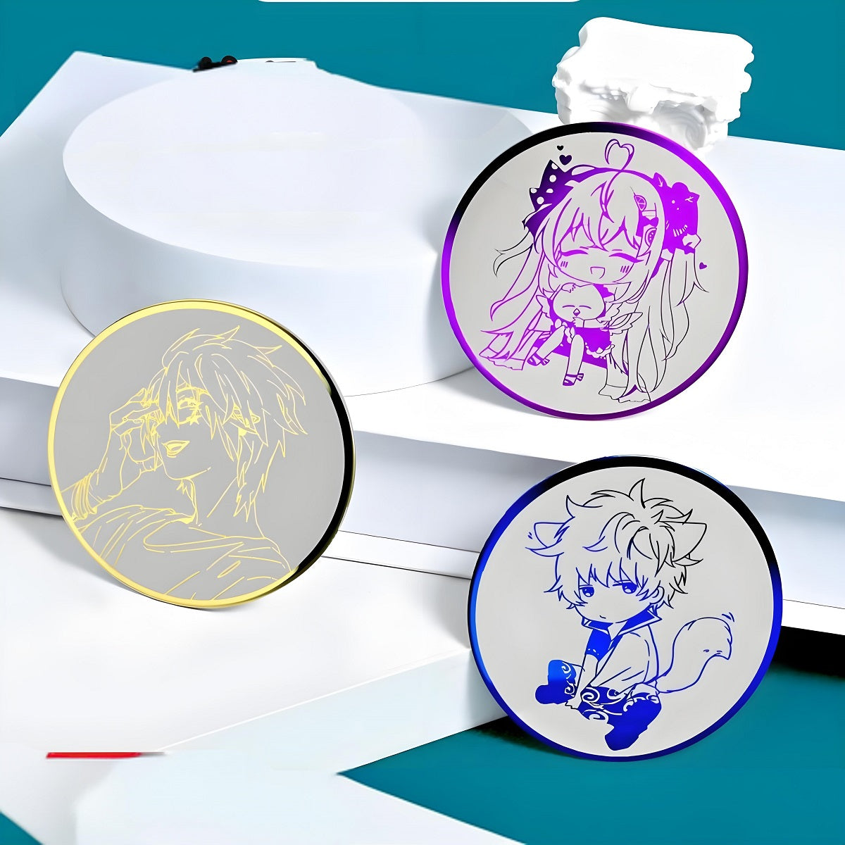 The colors are vibrants, the acrylic is thick. The standees are a little hard to put together (you may risk making marks on the stand) but once they are on, I accidentally dropped one on the floor and it didn't move a milimeter ! Very sturdy. Only the finest details such as the whiskers of the cats are lost. See below the original pictures and the product I recieved.